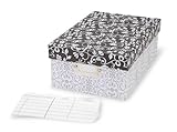 Darice 1209-89, Organize all those loose photos and store them in this simple and practical storage box. Made of sturdy cardboard with a pretty black and white swirl and flower design, the box has a label window, removable lid and divider index cards. And it's not just for photos: use to store recipes, CD's, videos, books, keepsakes, anything and everything. Plus, it is easy to decorate with glue, stickers, ribbon, paint, etc. Measures 7-1/2 by 4 by 11-inch. ...